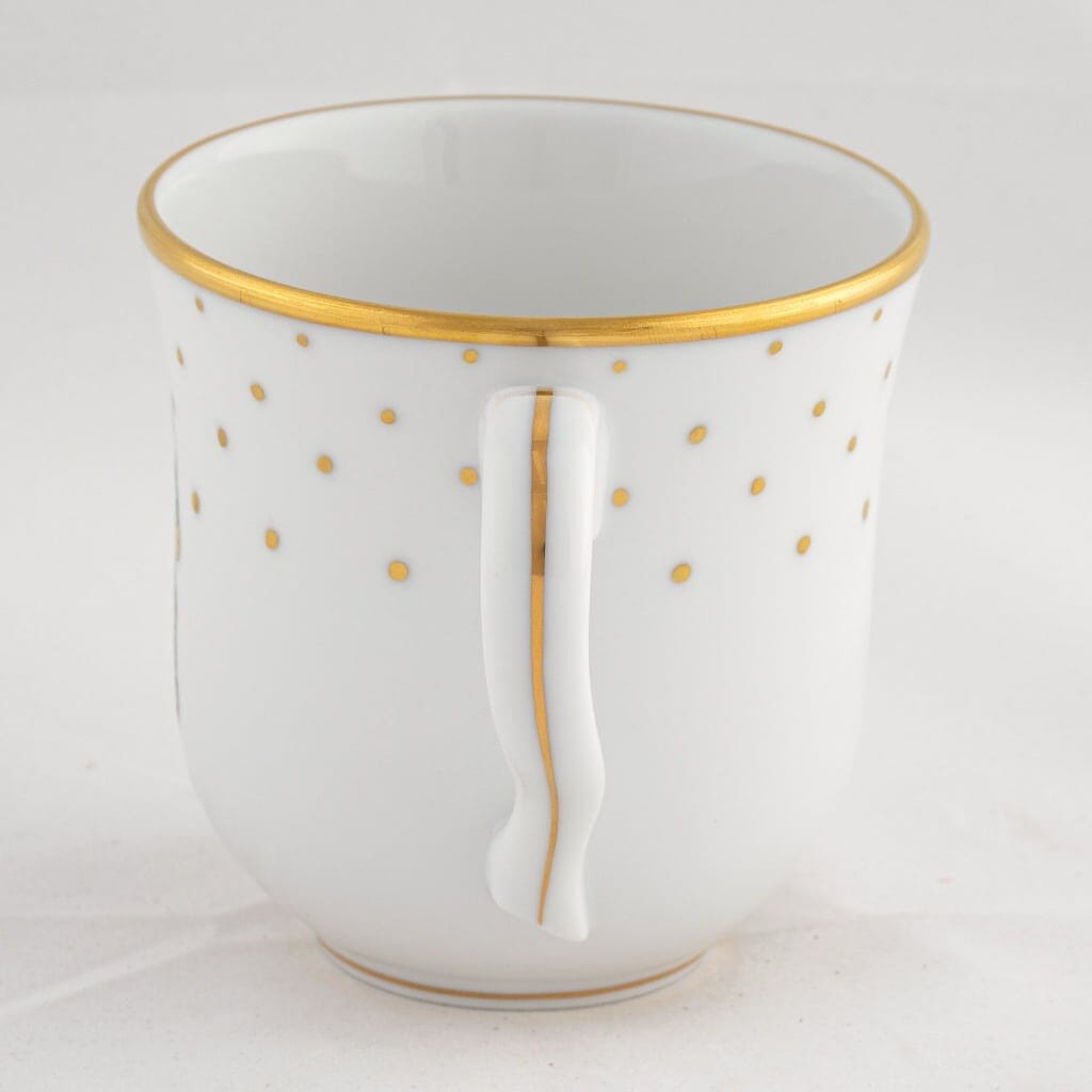 Add a delightful twist to your holiday rituals with the Herend Christmas Santa Bunny Mug. Crafted from fine porcelain, this mug features a whimsical hand-painted bunny adorned with a festive Santa hat, detailed with green fishnet patterns and gold accents, set against a pristine white background. The gold rim and scattered gold speckles enhance its elegant holiday appeal, making it perfect for enjoying warm drinks. Ideal as a festive gift or a charming addition to your collection, this mug embodies Herend’s masterful craftsmanship.